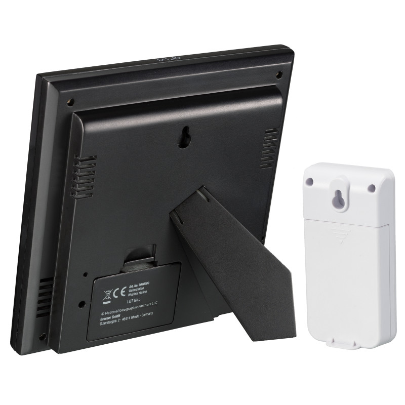 Современная метеостанция с цветным дисплеем National Geographic VA Colour (Black) (9070600) станет отличным помощником в домашних условиях, ведь знание и контроль окружающего нас микроклимата имеет прямое отношение не только к нашему здоровью но и к здоровью наших детей. Станция отображает прогноз погоды, обеспечивает измерение таких важных метеопараметров как температура и относительная влажность воздуха. Пользователь может запрограммировать крайние температурные приделы, при выходе за которые, будет проинформирован звуковым сигналом. Отображение атмосферного давления и тенденции его изменения, фазы луны, даты, дня недели. Точность времени под контролем радиосигнала DCF.