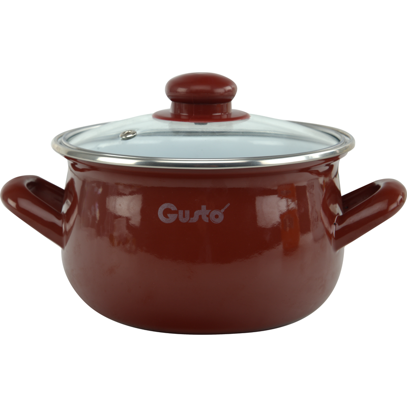 Gusto GT-T-122-R Кастрюля Ред 22 см 5.1 л Кастрюля Gusto GT-T-122-R выполнена из качественной стали с эмалированным покрытием. Диаметр модели 22 см. Кастрюля подходит для всех видов плит. Крышка изготовлена из стекла.