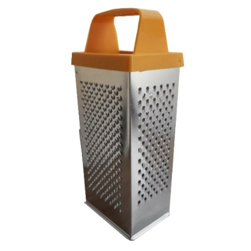 Терка эконом GT-Т-3 Gusto Кухонная терка эконом GT-Т-3 Gusto - качественная модель с пластиковой ручкой. Терка имеет 4 режущие поверхности: широкая грань с круглыми резцами 6 мм, узкая грань с круглыми резцами 2 мм, узкая грань с круглыми резцами 3 мм, широкая грань с резцами 4 мм. Выполнена из пищевой жести, подходит для всех продуктов и не окисляет их.