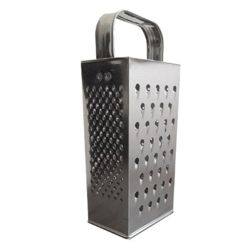 Терка эконом GT-Тм-3 Gusto Кухонная терка эконом GT-Тм-3 Gusto - качественная модель с металической ручкой. Терка имеет 4 режущие поверхности: широкая грань с круглыми резцами 6 мм, узкая грань с круглыми резцами 2 мм, узкая грань с круглыми резцами 3 мм, широкая грань с резцами 4 мм. Выполнена из пищевой жести, подходит для всех продуктов и не окисляет их.