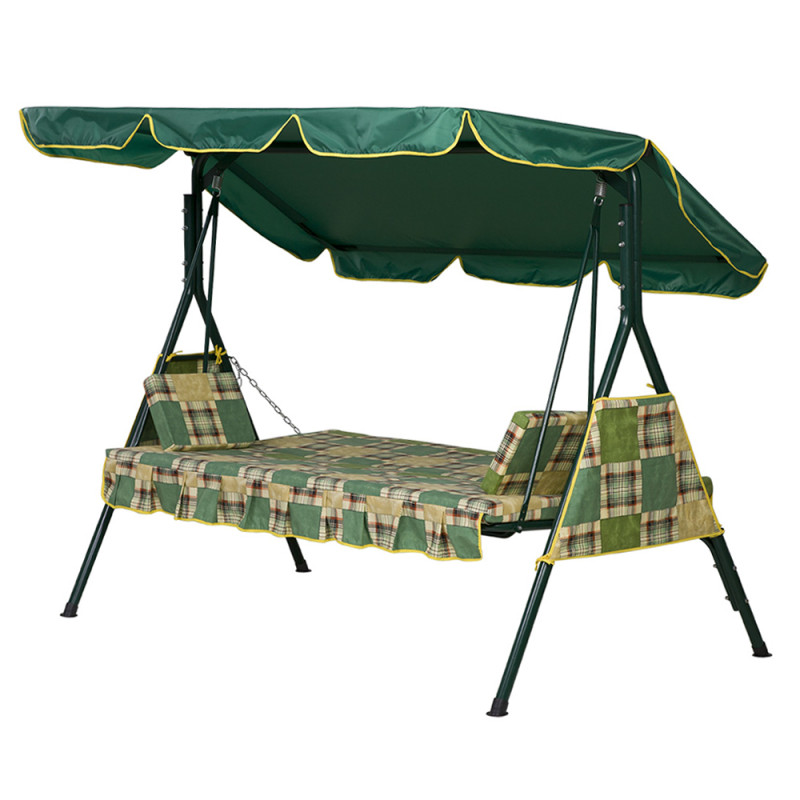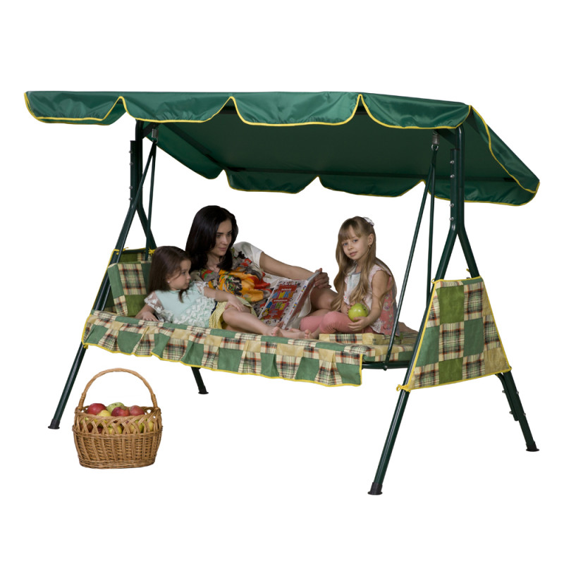 Внешний вид модели подойдёт к любому загородному экстерьеру — специалисты ТМ Витан подобрали оптимальные цветовые решения. В весенне-летний период качели будут гармонично смотреться на приусадебном участке или станут прекрасным дополнением Вашего отдыха в саду. Чехлы сидений и боковины изготовлены из ткани. На сиденье мягкий матрас из ткани, с поролоном внутри.