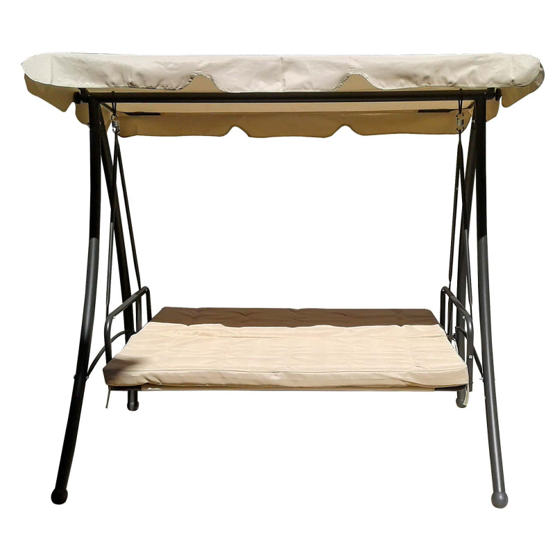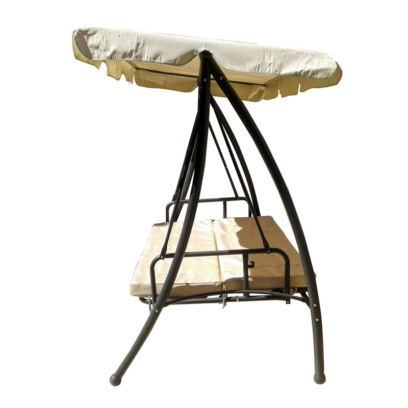 Качели с навесом «Dragon»– это красивое и удобное решение для Вашего сада. Отдыхать с комфортом на качелях любят и дети и взрослые. Надёжная конструкция рассчитана на большие нагрузки, так что сидеть на уютном диване-качели смогут трое взрослых или целая орава детей.Есть возможность сделать из сидячего места отдыха лежачее, стоит только откинуть спинку. Качели превращаются в полноценную кровать на которой можно спать на открытом воздухе. Одному будет просторно, да и вдвоём не тесно. Навес защитит от солнца в знойный день.Благодаря лёгкости конструкции, качели можно переставлять по участку в разные места по желанию. Садовые качели становятся любимым местом полноценного отдыха.Характеристика:— материал: полиэстер с наполнителем;— цвет: бежевый, черный;— каркас: сталь;— размер в разложенном виде: 201х179х123 см (ВхДхШ);— размер в упакованном виде: 148х24,5х57,5 см (ВхГхШ);— размер сиденья: 52/104х155 см (ГхШ);— высота спинки: от сиденья 52 см;— вес: 39 кг;— нагрузка: 250 кг.