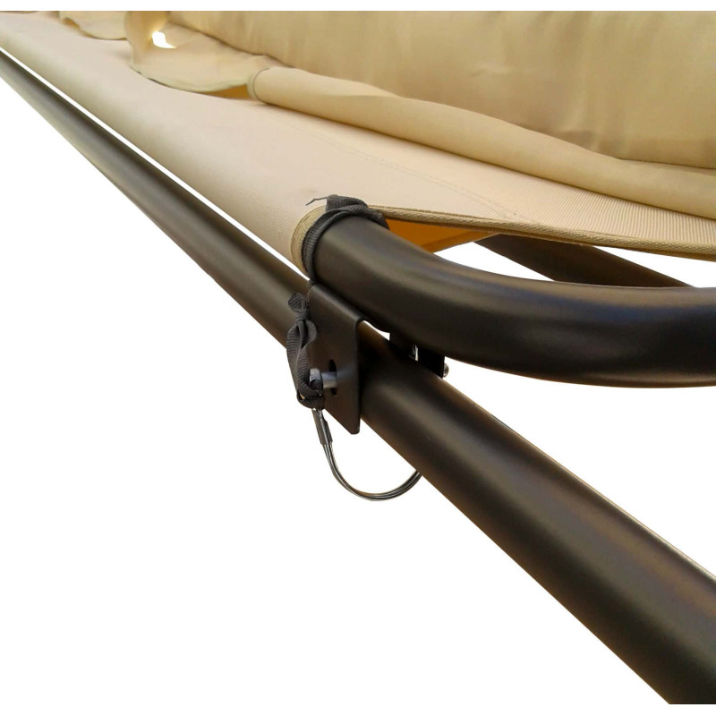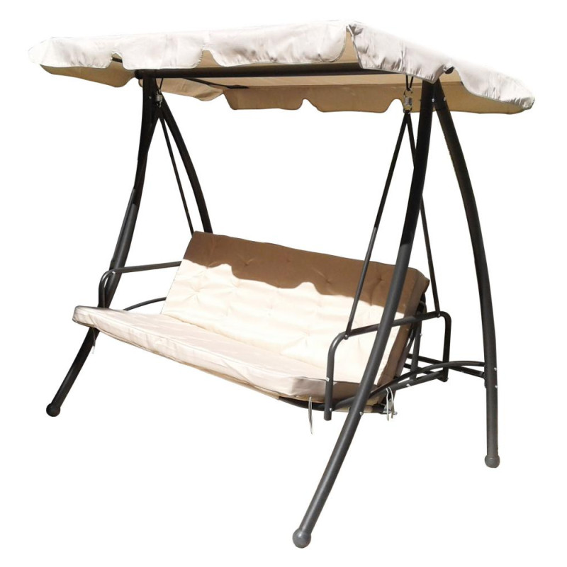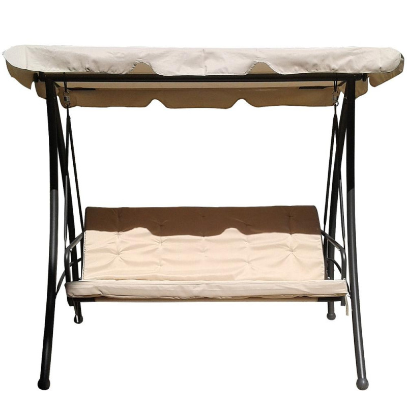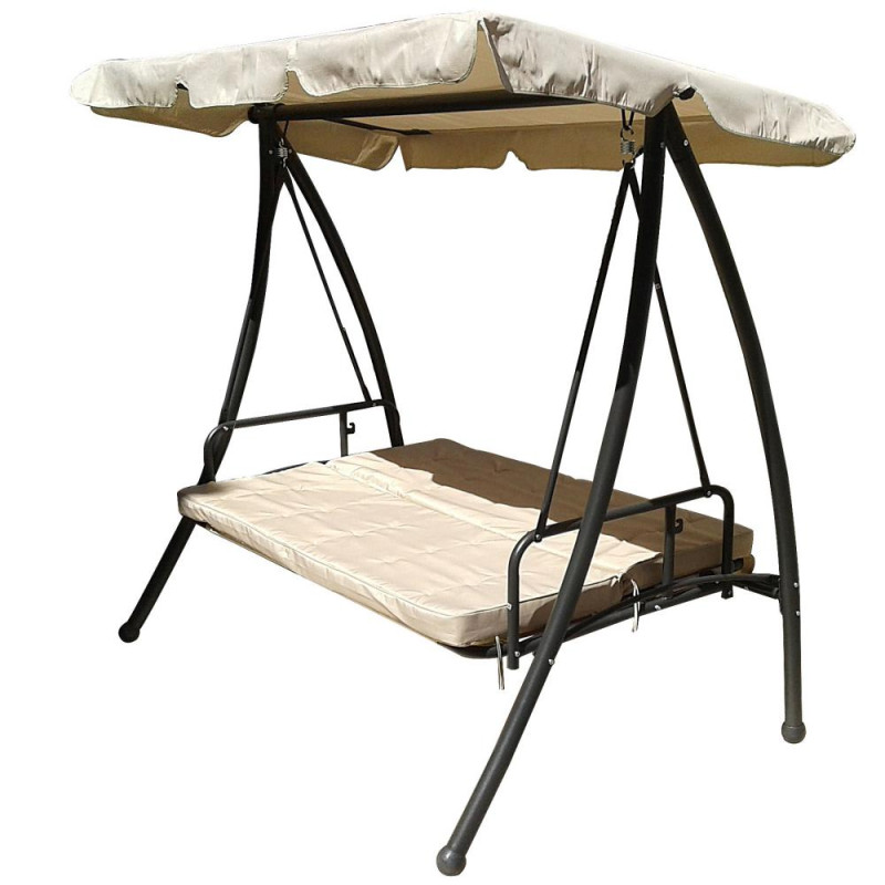 Качели с навесом «Dragon»– это красивое и удобное решение для Вашего сада. Отдыхать с комфортом на качелях любят и дети и взрослые. Надёжная конструкция рассчитана на большие нагрузки, так что сидеть на уютном диване-качели смогут трое взрослых или целая орава детей.Есть возможность сделать из сидячего места отдыха лежачее, стоит только откинуть спинку. Качели превращаются в полноценную кровать на которой можно спать на открытом воздухе. Одному будет просторно, да и вдвоём не тесно. Навес защитит от солнца в знойный день.Благодаря лёгкости конструкции, качели можно переставлять по участку в разные места по желанию. Садовые качели становятся любимым местом полноценного отдыха.Характеристика:— материал: полиэстер с наполнителем;— цвет: бежевый, черный;— каркас: сталь;— размер в разложенном виде: 201х179х123 см (ВхДхШ);— размер в упакованном виде: 148х24,5х57,5 см (ВхГхШ);— размер сиденья: 52/104х155 см (ГхШ);— высота спинки: от сиденья 52 см;— вес: 39 кг;— нагрузка: 250 кг.