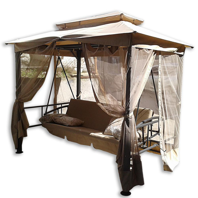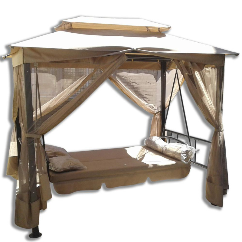 Найдите во дворе частного дома или на даче место для чудесных качелей «Emotiv». Они станут украшением Вашего участка благодаря неповторимому дизайну.Вы оцените множество плюсов данной модели: Возможность свободно сидеть троим взрослым людям. Подушки и валики создадут ощущение отдыха на уютном мягком диване. Приятная расцветка имеет элегантный вид. Фиксатор позволяет закрепить лавочку качели в неподвижном состоянии. Откинув спинку, Вы получите лежачее место для двоих. Имеющаяся в комплекте москитная сетка со всех сторон надёжно защитит вас от насекомых.Её можно полностью зашторить и закрепить между собой «молниями», а можно раздвинуть или совсем убрать по Вашему желанию.Изготовлены качели из прочных долговечных материалов.Характеристика:— материал: полиэстер с наполнителем, текстилен;— цвет: бежевый, черный;— каркас: стальная труба Ø60 мм, Ø 38 мм; Ø 32 мм; Ø 28 мм; Ø 18 мм;— размер в разложенном виде: 257х235х174 см (ВхДхШ);— размер в упакованном виде: 227,5х23х41,5 / 204х23х57 см (ВхГхШ);— размер сиденья: 52/104х155 см (ГхШ);— высота спинки: от сиденья 52 см;— вес: 72 кг;— нагрузка: 250 кг.