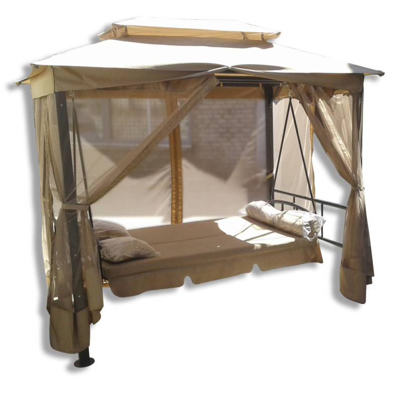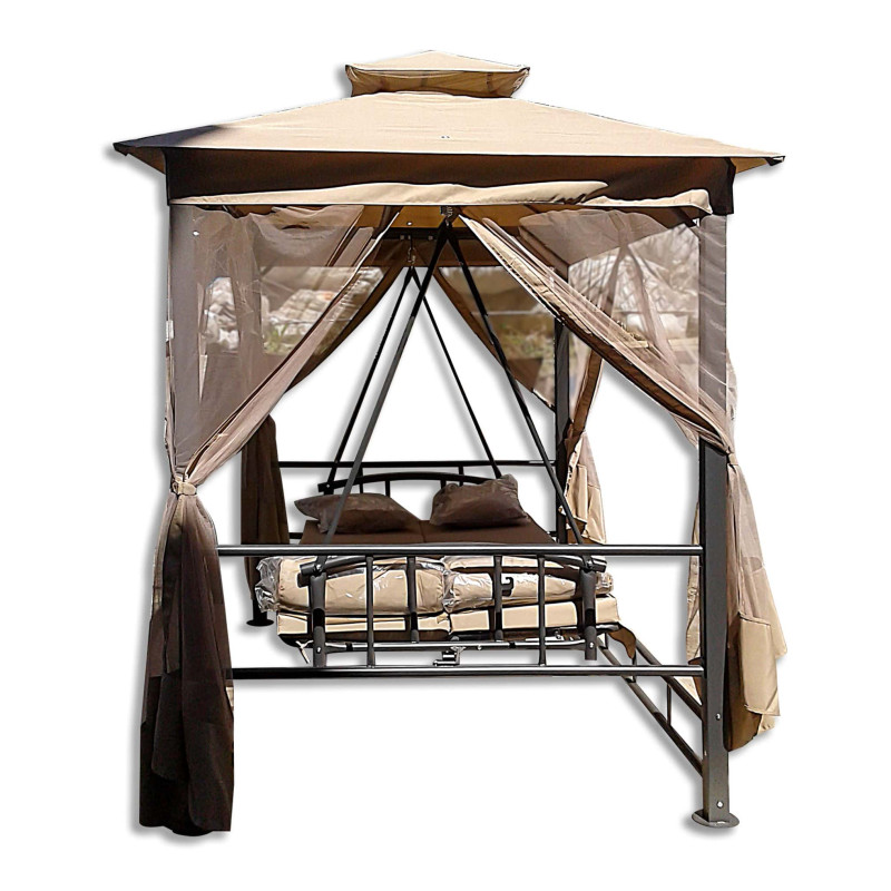 Найдите во дворе частного дома или на даче место для чудесных качелей «Emotiv». Они станут украшением Вашего участка благодаря неповторимому дизайну.Вы оцените множество плюсов данной модели: Возможность свободно сидеть троим взрослым людям. Подушки и валики создадут ощущение отдыха на уютном мягком диване. Приятная расцветка имеет элегантный вид. Фиксатор позволяет закрепить лавочку качели в неподвижном состоянии. Откинув спинку, Вы получите лежачее место для двоих. Имеющаяся в комплекте москитная сетка со всех сторон надёжно защитит вас от насекомых.Её можно полностью зашторить и закрепить между собой «молниями», а можно раздвинуть или совсем убрать по Вашему желанию.Изготовлены качели из прочных долговечных материалов.Характеристика:— материал: полиэстер с наполнителем, текстилен;— цвет: бежевый, черный;— каркас: стальная труба Ø60 мм, Ø 38 мм; Ø 32 мм; Ø 28 мм; Ø 18 мм;— размер в разложенном виде: 257х235х174 см (ВхДхШ);— размер в упакованном виде: 227,5х23х41,5 / 204х23х57 см (ВхГхШ);— размер сиденья: 52/104х155 см (ГхШ);— высота спинки: от сиденья 52 см;— вес: 72 кг;— нагрузка: 250 кг.