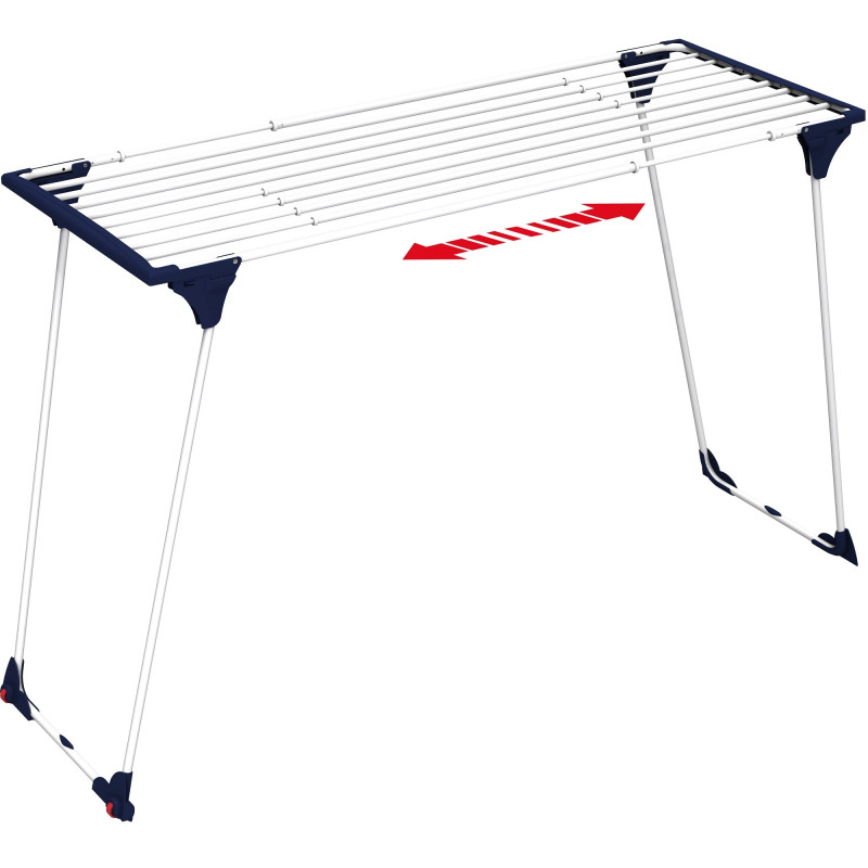 Легко розсувається, ідеально підходить для простирадл і скатертин. Не залишає слідів на білизні завдяки потовщеним прутам. Із захистом від подряпин, коліщатками та захисними куточками