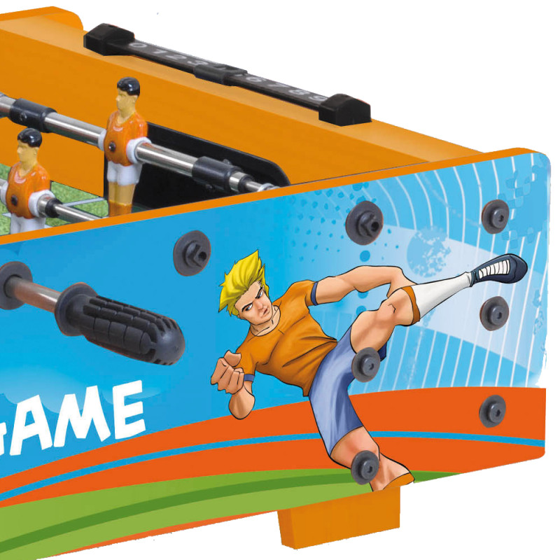- Фигурки игроков оранжевого и синего цвета закреплены на штангах индивидуально.