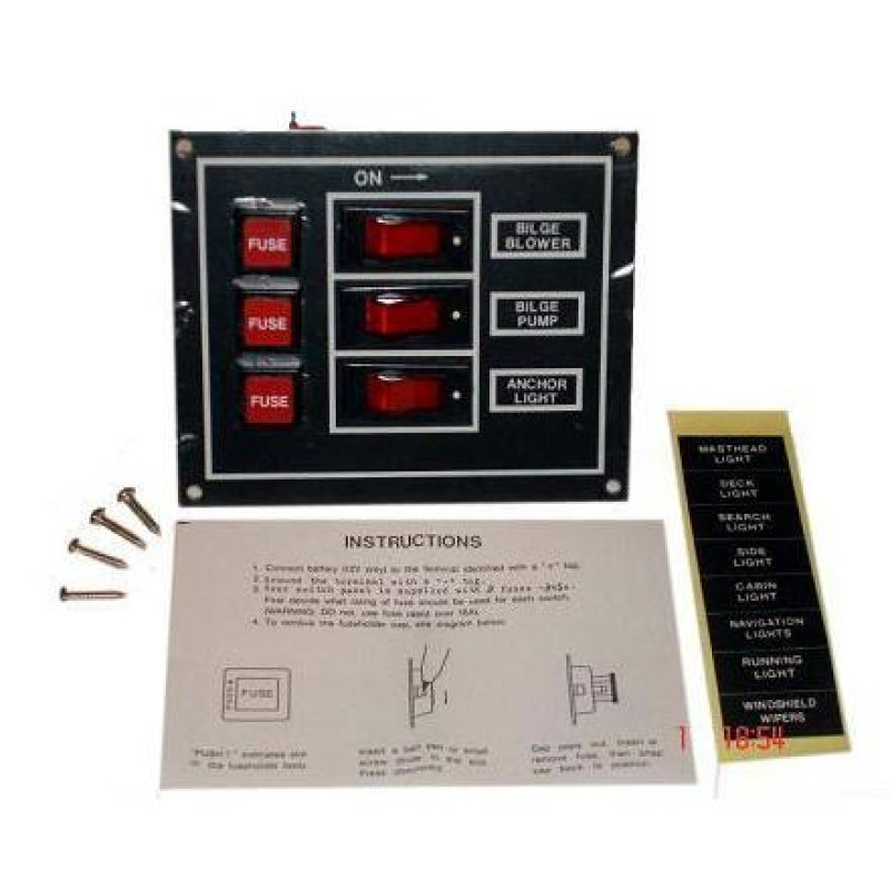 Панель переключателей на 3 шт (Тайвань)размер 101.6mm x 95.3mm x 1.5mm• 12 Вольт• 20 наклеек• UL переключатели с подсветкой• с/ автоматами 5A x 1шт 10A x 1шт, 15A x 1шт• Влагостойкий• упаковка блистер