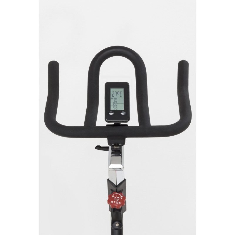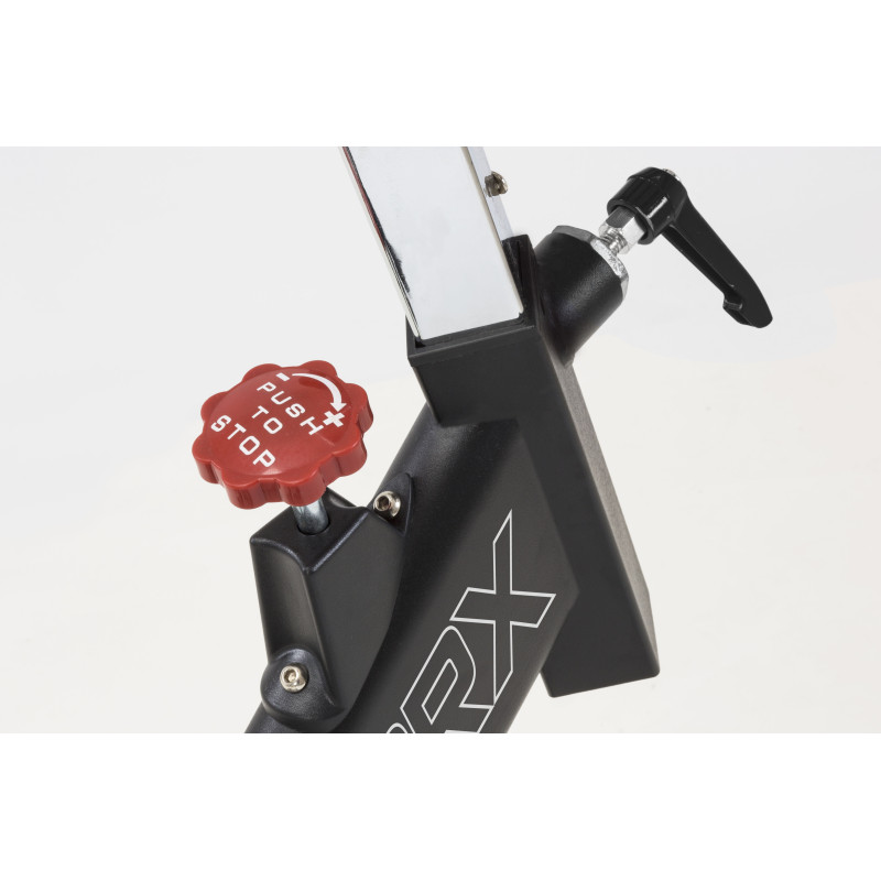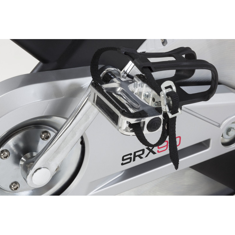 Сайкл-тренажер Toorx Indoor Cycle SRX 90 (SRX-90) від італійського виробника Garlando S.p.A. призначений для інтенсивного кардіотренування в домашніх умовах. Тренажер має колодкову гальмівну систему з ручним безступінчатим регулюванням навантаження, а також сучасний комп'ютер з необхідним набором функцій. Важкий 24-кілограмовий маховик разом з ремінним приводом забезпечують безшумність роботи тренажера і достатнє навантаження навіть для підготовлених спортсменів. Спін байк розрахований на вагу до 140 кг і підійде для користувачів зростом до 2 м. Нагрудний кардіодатчик для бездротового вимірювання пульсу буде доречним під час тренування для контролю частоти серцевих скорочень. Спортивне сидіння і кермо регулюються по висоті та в горизонтальній площині, забезпечуючи індивідуальне налаштування. Транспортувальні ролики в передній частині тренажера дозволяють вільно переміщати його по кімнаті.