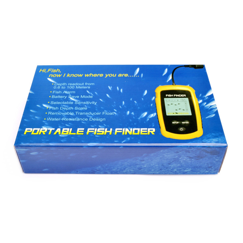 Эхолот JoЭхолот, Fish finder FF 1108/TL88Описание товара: Эхолот рыбопоисковый необходим как опытному рыболову, так и новичку. С помощью этого прибора можно обнаружить места скопления рыбы и обеспечить себе удачный улов. Эхолот рыбопоисковый Fish Finder FF1108/TL88 предназначен для использования с неподвижных или малоподвижных оснований, его можно использовать как летом с лодки, так для зимней рыбной ловли. Датчик эхолота помещен в водонепроницаемый корпус, существует возможность регулирования мощности сигнала датчика и чувствительности сонара. Зеленая подсветка экрана обеспечивает видимость в плохих условиях. Это устройство работает в интервале температур от -20 C, до +70 C (-4 F на 158 F). С этим гидролокатором Вам не нужно будет много времени, чтобы обнаружить рыбу (или ее отсутствие) в конкретном месте. На экране 2? LCD монитора можно увидеть практически всех присутствующих морских (речных) обитателей, и не тратить зря ваше время. Эхолот Fish Finder fd01wr ( ff1108-1) — этот тип портативного эхолота Fishfinder является наиболее бюджетным. Оптимально подходит для рыбной ловли с лодки и для зимней рыбалки. Конструкция эхолота Fish Finder fd01wr ( ff1108-1 ) представляет собой небольшой 12 сантиметровый блок с 7,5 метровым проводом. Эхолот Fish Finder FD01WR (ff1108-1) отлично вмещается в руку и в карман куртки, что делает его использование комфортным если сравнить с громоздкими навигационными эхолотами. Экран портативного эхолота Fish Finder FD01WR ( ff1108-1 ) схематически выглядит как на рисунке: 1. Уровень чувсвтвительности эхолота 2. Индикатор экономии батареи 3. Состояние индикатора рыбы 4. Подсветка. 5. Уровень заряда батареи 6. Индикатор глубины. 7. Индикатор нахождения рыбы. 8. Глубина нахождения рыбы. 9. Рельеф дна. 10. Структура дна (каменистое дно, трава и т.д.) Портативный Эхолот Fish Finder при использовании для зимней рыбалки. Существует несколько способов использования эхолота fishfinder fd 01wr на зимней рыбалке. Два основных способа: погружение датчика эхолота в пробуренную лунку на глубину 18-20 см. или прикладывая датчик эхолота к равномерной поверхности льда без бурения лунки, предварительно смочив поверхность льда водой и дать возможность датчику эхолота примерзнуть.При использовании эхолота без бурения лунки рекомендуется погружать датчик в пакет с водой. Эхолот Fish Finder при использовании с лодки В комплект эхолота входит крепление для лодки. Датчик эхолота fd01wr можно закреплять не только непосредственно к корпусу лодки а и к другим приспособлениям. Датчик эхолота можно оставлять и в свободном плавании благодаря плавающему поплавку, который находится в комплекте эхолота Fish Finder fd01wr (ff1108-1).В некоторых случаях портативный эхолот FishFinder FD01WR (ff1108-1) может измерять глубину и через дно лодки, если предварительно смазать область соприкосновения датчика эхолота с дном лодки. Но работоспособность такой конструкции будет зависеть от материала дна лодки.Техническое описание портативного эхолота:Измерение глубины: от 0.7 м до 100м.Длина кабеля: 7.5 мУгол луча датчика эхолота: 45 градусовСъемный датчикДисплей со светодиодной подсветкойПитание от 4х батареек АААРегулируемая чувствительность эхолокацииОтображение рыбы на шкале глубиныВлагозащита: 4 уровень (брызгозащита)Определение типов днаРабочие температуры: -20 ° C +70 ° CРазмеры: 120 30 ммМасса прибора 633 г.Комплектация эхолота Fish Finder:цифровой блок эхолотадатчик — трандьюсер 