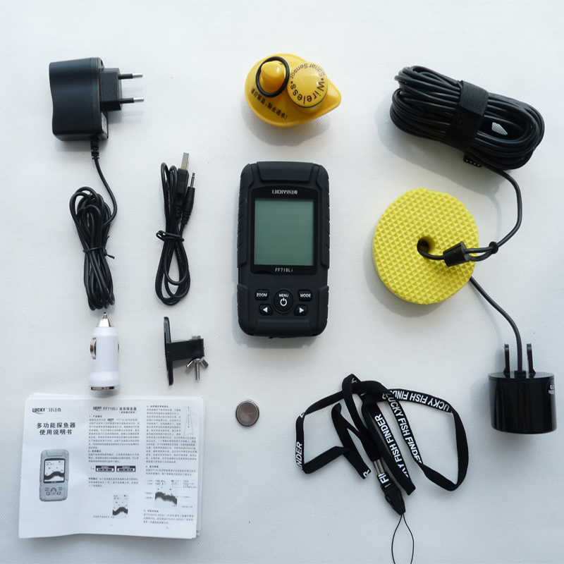 Эхолот Lucky FF718Li c литеевой батареей и двумя трансдюсерами.Этот портативный эхолот совмещает в себе традиционные проводные и беспроводные технологии. Предназначен для рыбаков-любителей и профессионалов.Эхолот имеет следующие преимущества: температура воды отображается как в C, так и в F, автоматический и ручной выбор диапазона. Характеристики:Угол луча датчик — 45 градусовУгол луча беспроводного датчика 90 градусовОтображение глубины в метрах или футахОтображение температуры воды в С или F Диапазон глубин:0.6-40М/2-120ft (беспроводной датчик)100 М/320ft (проводной датчик)Диапазон глубин выбирается либо в ручную, либо в атоматическом режимеLCD экран с регулируемой контрастностьюРазрешение экрана 128X128, 4 оттенка серого цветаЧастота, 200kHz (датчик) / 125 кГц (беспроводной датчик)Настройка сигнализации на определенную глубинуОтображение больших и маленьких рыб (откл/вкл)Поставляется с кабелем датчика 6мИндикатор заряда батареиОтображает контуры дна в реальном времениПолностью водонепроницаемый дизайн (беспроводной датчик)Питание : литий-ионная аккумуляторная батарея 3.7VНапряжение : 100-240ВПроводной датчик:Рабочая частота — 200 кГцВозможно использование на глубине до 320 футов (100M)Встроенный датчик температурыБеспроводной датчик:Рабочая частота — 125 кГцВозможно использование на глудине 2-120 фута (0,6-40М)Встроенный датчик температурыИсточник питания : 1 x CR-2032 Литиевая батареяНабор включает в себя:1 x эхолот1 x датчикс кабелем 6м1 x Беспроводной дистанционный датчик1 x Питание от прикуривателя автомобиля1 x Ремешок на шею1 x Болт из нержавеющей стали1 x гайка из нержавеющей стали1 x Зарядное устройство1 x Гарантийный талон1 x литиевая батарейка CR20321 x Инструкция по эксплуатации на русском языке1 х Легкий чехол