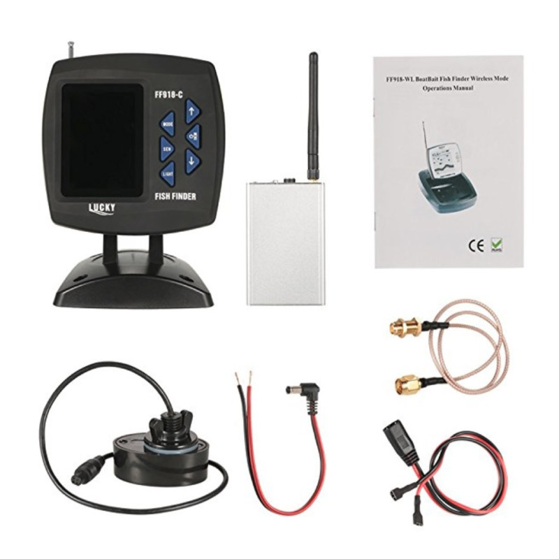 Эхолот Lucky FF918S-WLОписание1) Дисплей: 62мм х 76мм2) Выходная мощность (RMS): 100 Вт 3) Выходная мощность (от пика до пика): 800 Вт 4) Рабочая частота: 200 кГц 5) Охват гидролокатора (беспроводной): 45 градусов на 200 кГц 6) Глубина Единицы измерения: метры / футы7) Глубина: 100 м8) Беспроводной рабочий диапазон: до 300м9) Целевое разделение: 2,5 дюйма 10) Пресная / соленая вода 11) Датчик температуры: встроен в трансдьюсер12) Рабочая температура: от -10 ° С до 50 ° С 13) Потребляемая мощность трансдьюсера: от 10 до 20 В постоянного тока / 8шт AA щелочные батарейки (в комплект поставки НЕ ВХОДЯТ)14) Установка трансдьюсера эхолота: как на фото беспроводной 15) Монтажный блок: Портативный кейс-экран складывается16) Значок обнаружения рыбы, сигнализация рыбы 3 размера17) Оперативная беспроводной Частота: 433.93mHz 18) Напряжение для работы эхолота : от 10 до 20 В постоянного тока, батарейки (в комплект поставки НЕ ВХОДЯТ)19) Память: встроенная память хранит — в настройки гидролокатора, когда устройство выключено20) Потребление тока передатчика эхолота 120мА Комплектация эхолота:1. Беспроводной датчик с модулем передачи данных2. Штатная антенна с модулем передачи данных3. Прибор приемник с ЛСД дисплеем (меню на русский, английский, китайский язык)