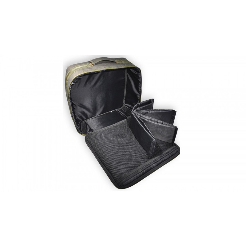 Строгие требования к личной оснастке - отличительная черта настоящего мастера рыбной ловли, а сумка для 4 катушек LeRoy Reel 4 Case это отличный пример полного соответствия им. Вместе с катушками можно транспортировать сменные шпули, 4 дополнительных отсека внутри изделия предусмотрены под эту задачу.КонструкцияСумка трехслойная, с полужесткими стенками из пенопропилена, для защиты содержимого от механических повреждений:1 слой - ткань Oxford плотностью 600D, износостойкая и легкая в уходе ткань, с защитной пропиткой от воды и грязи. Ткань долгое время не выгорает на солнце, а при стирке в машинке не теряет цвет.2 слой - пенопропилен - упругий материал, толщиной 0,8 мм, позволяющий изделию не терять форму и поглощать вибрации, защищая ваши катушки внутри сумки от внешних воздействий.3 слой - подкладочная мягкая ткань, изолирующая одну катушку от другой, для защиты лакокрасочного покрытия и минимизации механического трения.Внутри сумки Вы увидите большой карман на молнии встроенный в крышку изделия, а также, съемную защитную перегородку для катушек, которая фиксируется на 4 липучки. Она выполнена в комбинации из гибкого пластика и пены. Вынув перегородку, Вы получаете абсолютно универсальную сумку.Характеристики:сумка для 4 катушек.Ткань: Oxford 600D.Цвет: Олива.Размер: 30х30х11 см.Количество вмещаемых катушек: 4 (4000 серии).Количество вмещаемых шпуль: 4.