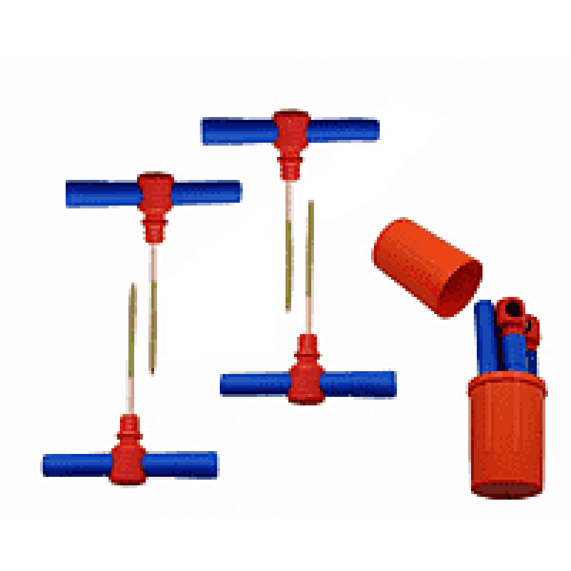 Комплект из 4 ввертышей имеет длину рабочей части 100 мм и позволяет закрепить палатку на любом льду. При транспортировки рабочая часть закрывается специальным чехлом, который при работе становиться удобным воротком. Ввертыши могут храниться в одном чехле с палаткой и не требуют дополнительных инструментов. Пластмассовые детали не «»обжигают»» руки на морозе. Резьбовая часть выполнена из высококачественной стали, которая не ломается на морозе.
