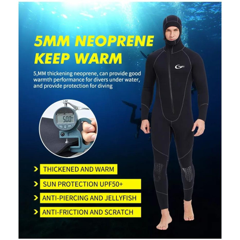 Характеристики:Тип изделия: гидрокостюм полныйМатериал: неопренТолщина (мм): 5Размер: XXLЦвет: черный