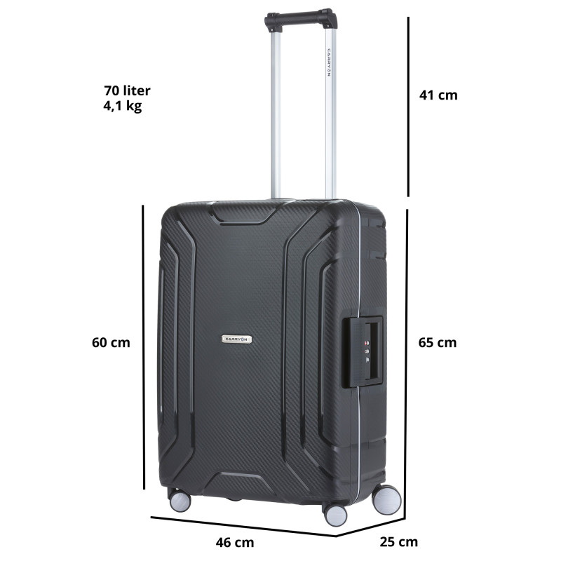 Для предотвращения нежелательных царапин и потертостей в серии CarryOn Steward применен метод текстурированного покрытия поверхности корпуса чемодана.