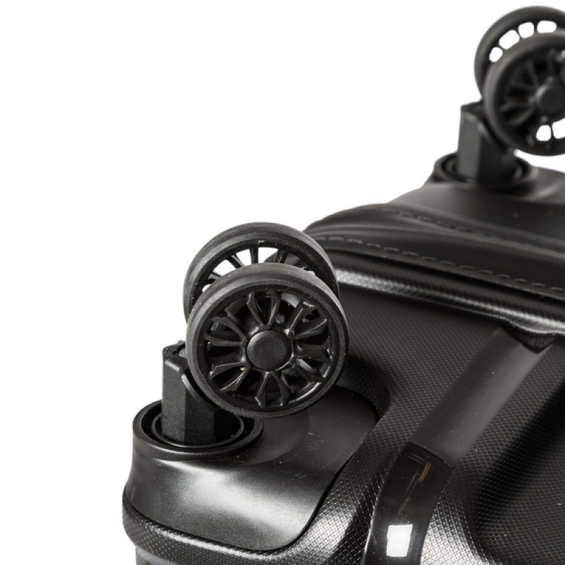 - DUALTRAK™ WHEELS - для более уверенного сцепления и лучшей маневренности на всех поверхностях, данная модель оснащена четырьмя сдвоенными колесами увеличенного диаметра, вращающимися на 360° независимо друг от друга. Двухкомпонентные колеса DUALTrak™ состоят из прочной и облегченной основы со спицами, облаченной в полиуретановую "шину", отличающуюся износостойкостью и низким уровнем шума при движении. Для максимальной маневренности и плавности хода каждая из двух перпендикулярных осей вращения оборудована подшипником. Кроме того, эти колеса имеют более низкий центр тяжести, чем большинство других, что позитивно сказывается на устойчивости чемодана, в том числе и во время движения.