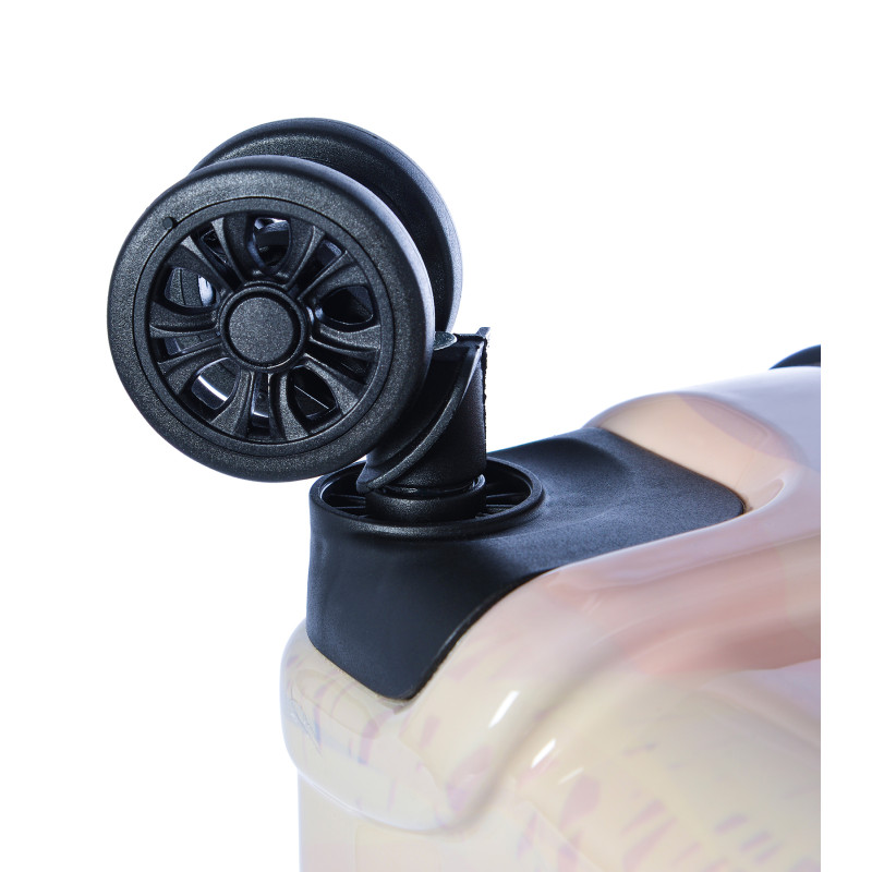 • DUALTRAK™ WHEELS - для более уверенного сцепления и лучшей маневренности на всех поверхностях, данная модель оснащена четырьмя сдвоенными колесами увеличенного диаметра, вращающимися на 360° независимо друг от друга. Двухкомпонентные колеса DUALTrak™ состоят из прочной и облегченной основы со спицами, облаченной в полиуретановую "шину", отличающуюся износостойкостью и низким уровнем шума при движении. Для максимальной маневренности и плавности хода каждая из двух перпендикулярных осей вращения оборудована подшипником. Кроме того, эти колеса имеют более низкий центр тяжести, чем большинство других, что позитивно сказывается на устойчивости чемодана, в том числе и во время движения.