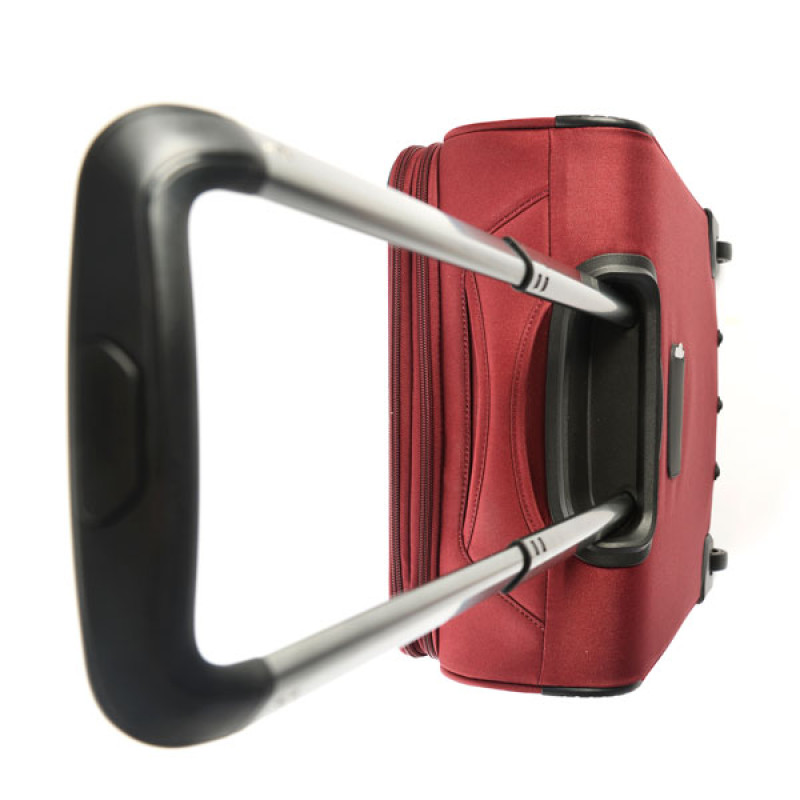 • SOFT SHELL POLYESTER 600D - ткань из полиэстера с толщиной нити 600D, имеющая гладкую поверхность с отблеском, и с внутреннее полиуретановое покрытие, защищающее содержимое чемодана от намокания во время дождя средней интенсивности. Также ткань обладает хорошей износостойкостью, и не разрушается под действием ультрафиолетового излучения.