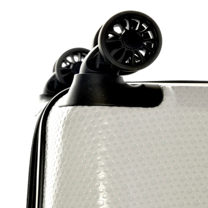 - DUALTRAK™ WHEELS - для более уверенного сцепления и лучшей маневренности на всех поверхностях, данная модель оснащена четырьмя сдвоенными колесами увеличенного диаметра, вращающимися на 360° независимо друг от друга. Двухкомпонентные колеса DUALTrak™ состоят из прочной и облегченной основы со спицами, облаченной в полиуретановую "шину", отличающуюся износостойкостью и низким уровнем шума при движении. Для максимальной маневренности и плавности хода каждая из двух перпендикулярных осей вращения оборудована подшипником. Кроме того, эти колеса имеют более низкий центр тяжести, чем большинство других, что позитивно сказывается на устойчивости чемодана, в том числе и во время движения.