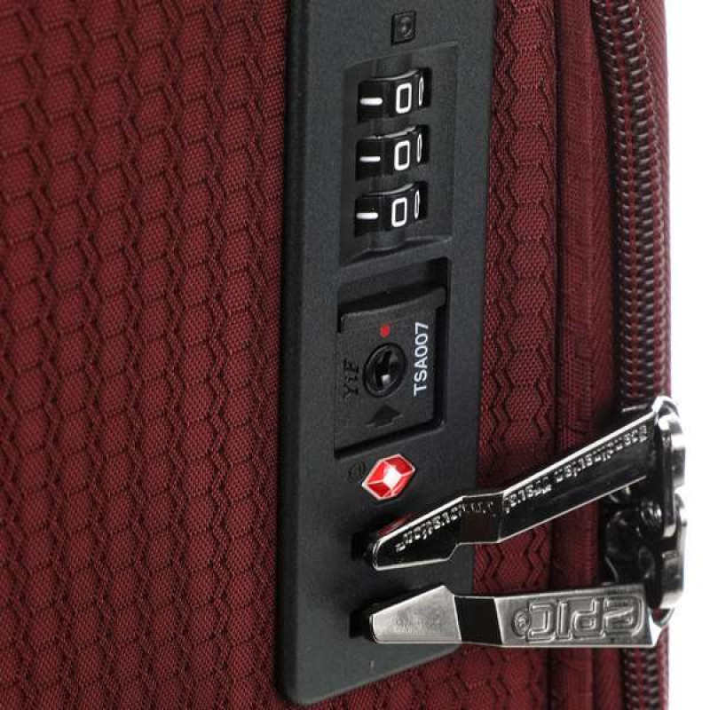 • TSA LOCK™ by TRAVEL SENTRY® - чемодан оборудован специальным кодовым замком с функцией таможенного досмотра TSA LOCK™. Не смотря на то, что современные технологии позволяют таможенным службам аэропортов проводить досмотр чемоданов с помощью специальных сканеров, иногда возникает необходимость вскрыть чемодан для более детальной проверки. Администрация транспортной безопасности США (Transportation Security Administration) совместно с компанией Travel Sentry разработала кодовые замки, которые могут быть открыты только специальными ключами, за которые сотрудники безопасности аэропортов несут персональную ответственность. Таким образом, при физическом досмотре и вскрытии багажа, замки и молнии останутся целы, и секретный код замка также будет сохранен. Сегодня множество служб безопасности аэропортов по всему миру одобрили и используют ключи системы TSA LOCK™ для досмотра багажа. Полный список стран и производителей багажа, официально использующих замки TSA LOCK можно посмотреть на сайте производителя Travel Sentry. Чемоданы EPIC, отмеченные логотипом Travel Sentry, оснащены замками системы TSA LOCK™ и соответствуют стандартам глобальной безопасности путешествий.