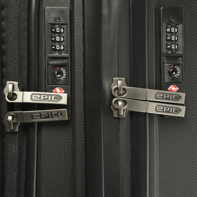 • TSA LOCK™ by TRAVEL SENTRY® - чемодан оборудован двумя специальными кодовыми замками с функцией таможенного досмотра TSA LOCK™. Не смотря на то, что современные технологии позволяют таможенным службам аэропортов проводить досмотр чемоданов с помощью специальных сканеров, иногда возникает необходимость вскрыть чемодан для более детальной проверки. Администрация транспортной безопасности США (Transportation Security Administration) совместно с компанией Travel Sentry разработала кодовые замки, которые могут быть открыты только специальными ключами, за которые сотрудники безопасности аэропортов несут персональную ответственность. Таким образом, при физическом досмотре и вскрытии багажа, замки и молнии останутся целы, и секретный код замка также будет сохранен. Сегодня множество служб безопасности аэропортов по всему миру одобрили и используют ключи системы TSA LOCK™ для досмотра багажа. Полный список стран и производителей багажа, официально использующих замки TSA LOCK можно посмотреть на сайте производителя Travel Sentry. Чемоданы EPIC, отмеченные логотипом Travel Sentry, оснащены замками системы TSA LOCK™ и соответствуют стандартам глобальной безопасности путешествий.