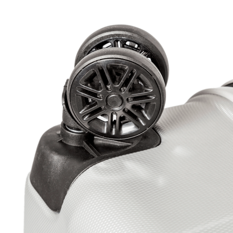 - DUALTRAK™ WHEELS - для более уверенного сцепления и лучшей маневренности на всех поверхностях, данная модель оснащена четырьмя сдвоенными колесами увеличенного диаметра, вращающимися на 360° независимо друг от друга. Двухкомпонентные колеса DUALTrak™ состоят из прочной и облегченной основы со спицами, облаченной в полиуретановую "шину", отличающуюся износостойкостью и низким уровнем шума при движении. Для максимальной маневренности и плавности хода каждая из двух перпендикулярных осей вращения оборудована подшипником. Кроме того, эти колеса имеют более низкий центр тяжести, чем большинство других, что позитивно сказывается на устойчивости чемодана, в том числе и во время движения.