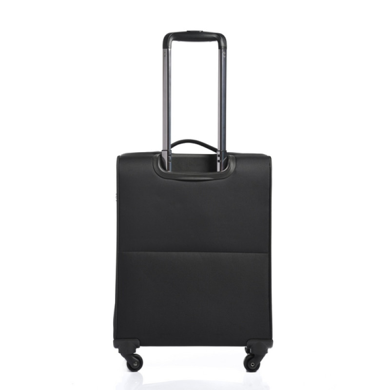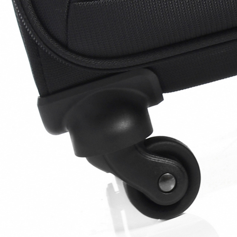 • SOFT SHELL POLYESTER 500D - ткань из полиэстера с толщиной нити 500D, имеющая объемный мелкий узор, создающий внешнюю игру света, и с внутреннее полиуретановое покрытие, защищающее содержимое чемодана от намокания во время дождя средней интенсивности. Также ткань обладает хорошей износостойкостью, и не разрушается под действием ультрафиолетового излучения.