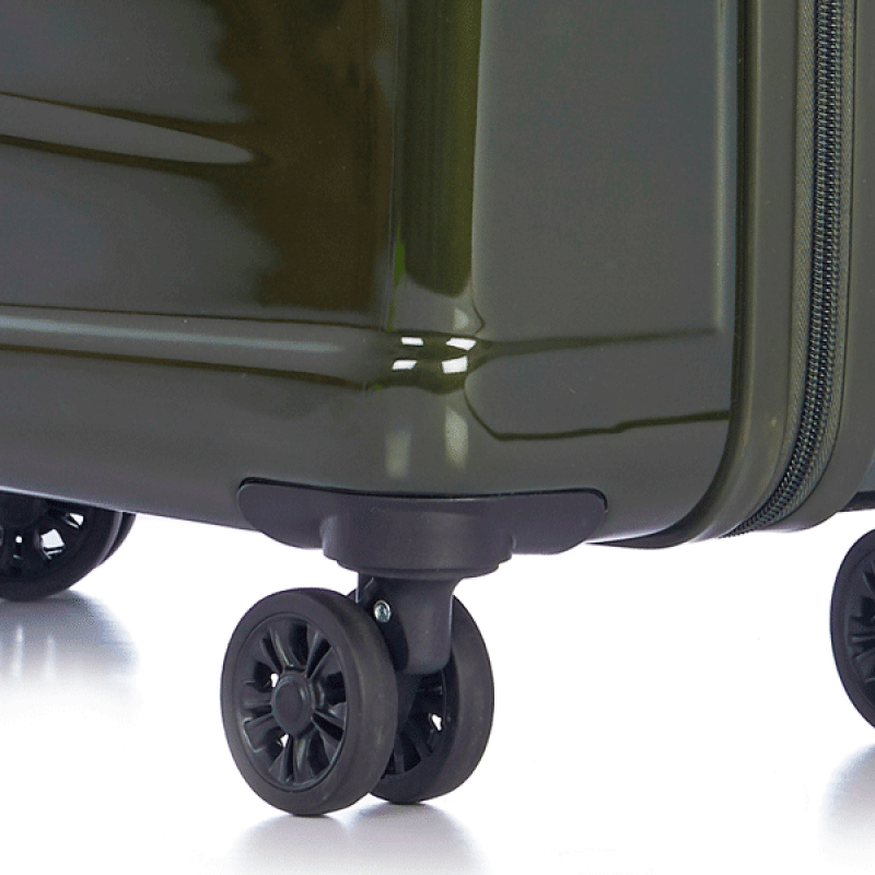 - DUALTRAK™ WHEELS - для более уверенного сцепления и лучшей маневренности на всех поверхностях, данная модель оснащена четырьмя сдвоенными колесами увеличенного диаметра, вращающимися на 360° независимо друг от друга. Двухкомпонентные колеса DUALTrak™ состоят из прочной и облегченной основы со спицами, облаченной в полиуретановую "шину", отличающуюся износостойкостью и низким уровнем шума при движении. Для максимальной маневренности и плавности хода каждая из двух перпендикулярных осей вращения оборудована подшипником. Кроме того, эти колеса имеют более низкий центр тяжести, чем большинство других, что позитивно сказывается на устойчивости чемодана, в том числе и во время движения.