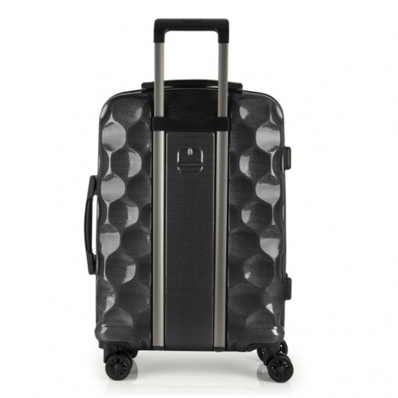 Чемодан оснащен четырьмя полноповоротными, спаренными колесами с возможностью независимого разворота каждого колеса на 360°. Системой предусмотрено равномерное перераспределения нагрузки на каждое колесо, что в свою очередь способствует плавному качению и маневренности чемодана, прилагая при этом минимум усилий.