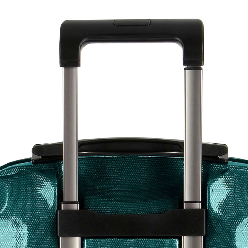 Чемодан оснащен четырьмя полноповоротными, спаренными колесами с возможностью независимого разворота каждого колеса на 360°. Системой предусмотрено равномерное перераспределения нагрузки на каждое колесо, что в свою очередь способствует плавному качению и маневренности чемодана, прилагая при этом минимум усилий.