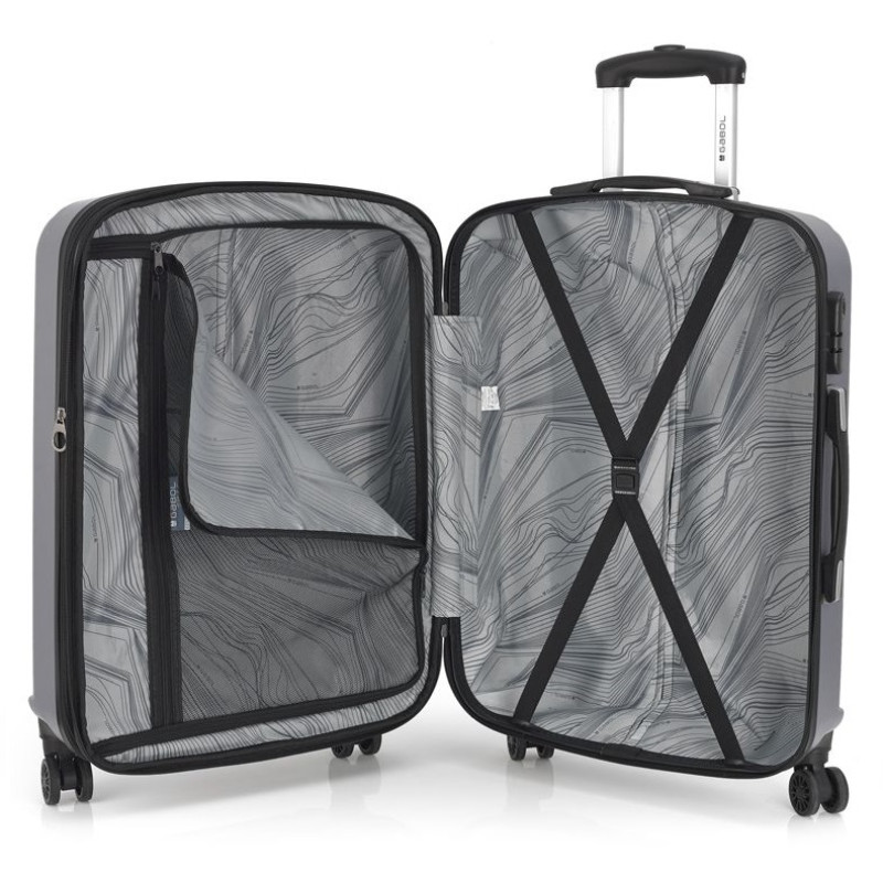 Коллекция чемоданов Gabol Alabama выполнена из прочного и долговечного материала - ABS-пластика, что очень важно для чемоданов, перевозимых в багажных отделениях. Внутренний объем разделен перегородкой на два отделения и имеет ремни для фиксации вещей внутри.