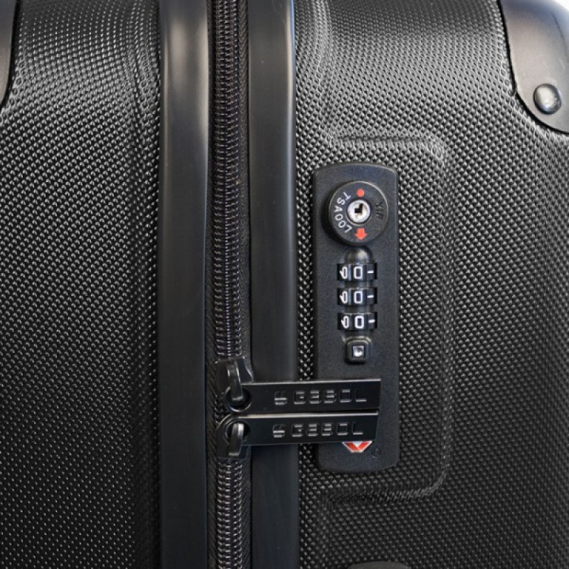 Чемодан оборудован фирменным кодовым замком с функцией таможенного досмотра TSA (Transportation Security Administration - Администрация по безопасности на транспорте). Таможенные службы совместно с Американской Ассоциацией по безопасности на транспорте (Transportation Security Administration или, сокращенно, TSA) получили абсолютное право, в целях безопасности, досматривать любой чемодан на колесах или сумку, показавшуюся им подозрительной. Агенты по безопасности на транспорте снабжены специальными TSA ключами, за которые они несут персональную ответственность. Благодаря наличию в замке функции TSA после досмотра ваши замки останутся целыми и невредимыми в отличии от багажа без функции TSA.