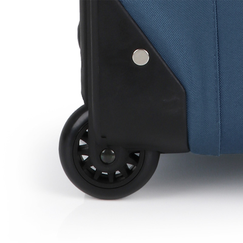 Чемодан оснащен парой надежных колес из высокотемпературного термопластичного полиуретана (TPU). Материал обладает прочностью сравнимой с пластиком, гибкостью силикона, а так же имеет повышенную устойчивость к перепадам температур. Отличительной особенностью колес из TPU материала является снижение шума до минимума при качении чемодана по неровной поверхности. Благодаря устойчивости к истиранию материал колес отличается длительным сроком эксплуатации.