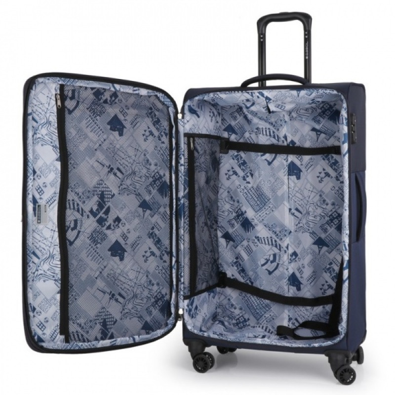 Чемодан Gabol серии Roma оснащен кодовым замком системы TSA для повышения безопасности. На фасадной части размещен вместительный карман на молнии. Внутренний объем имеет ремни для фиксации вещей внутри. Предусмотрена возможность увеличить полезный объем чемодана до 20%, благодаря наличию клапана, расстегнув специальную молнию по периферии чемодана. Чемодан легкий, маневренный и удобный для транспортировки.