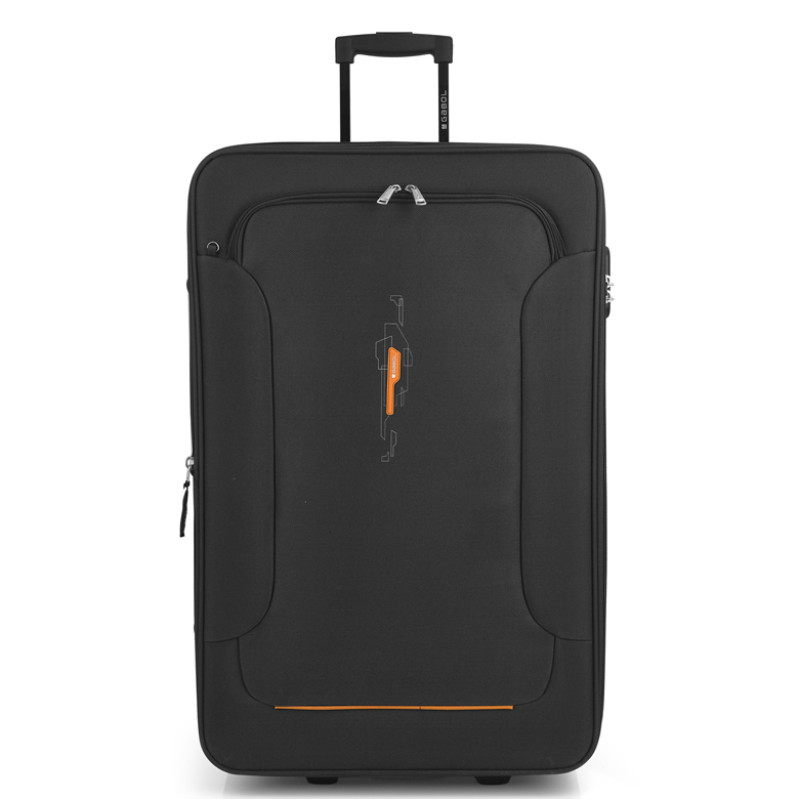 - Чемодан разделен перегородкой на молнии на два основных отделения.