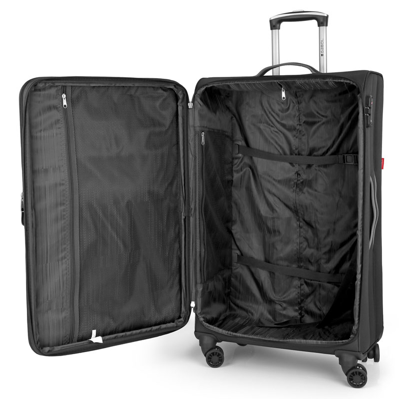 - Эластичные компрессионные ремни на фастексах для фиксации багажа внутри чемодана
