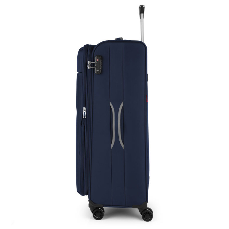 - Ручка в верхней и боковой части чемодана для удобства транспортировки в вертикальном и горизонтальном положении
