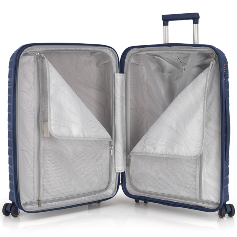 Корпус валіз Gabol серії Kiba виконаний з міцного та довговічного матеріалу - поліпропілену, що дуже важливо для валіз, які перевозяться в багажних відділеннях. Внутрішній об'єм розділений перегородкою на два відділення та має ремені для фіксації речей усередині.