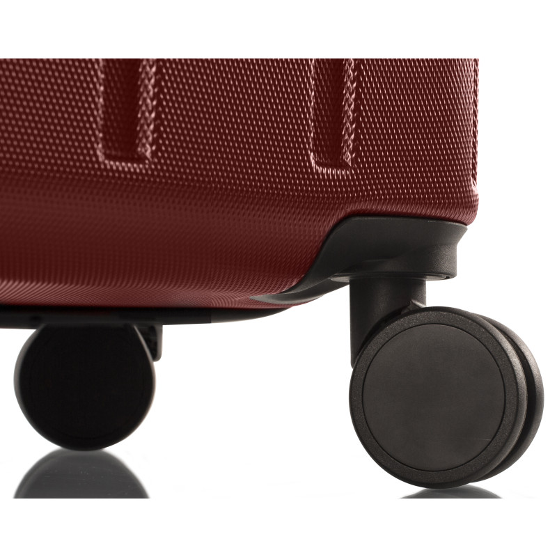 Валіза оснащена чотирма спареними повноповоротними колесами з можливістю незалежного розвороту кожного колеса на 360°. Системою передбачено рівномірний перерозподіл навантаження на кожне колесо, що у свою чергу сприяє плавному коченню та маневреності валізи, докладаючи при цьому мінімум зусиль. Також система дозволяє швидку зміну коліс без залучення сервісного центру.