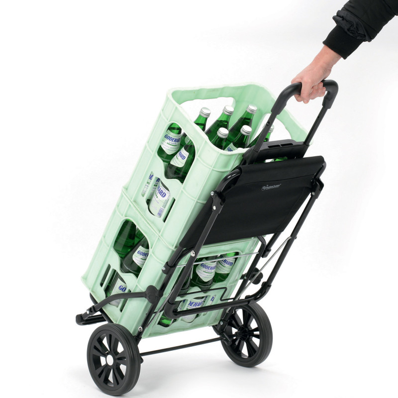 • Стальная тележка Komfort отличается своей легкостью, оснащена колесами диаметром 20 см и обладает грузоподъемностью 50 кг.  Благодаря простой системе крепления, колеса можно легко снять и помыть. Все, что Вам нужно сделать, это нажать на металлический фиксатор на колесе. Колеса большого диаметра подходят для неровной местности и легкого преодоления ступенек.
