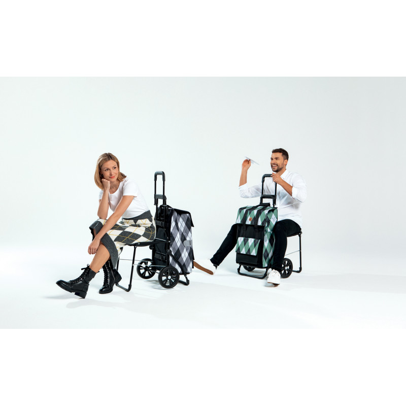 Сумка-тележка серии Komfort Shopper® обладает всеми достоинствами сумок-тележек торговой марки Andersen Shopper®  - легкостью, устойчивостью и долговечностью. Особенностью этой тележки является наличие встроенного раскладного кресла. Это надежная и компактная тележка для походов в магазин и на рынок за продуктами, в путешествиях, на пляже или рыбалке, на остановках в ожидании транспорта или парках на отдыхе. Данная модель помещается в багажнике любого автомобиля, и ее легко можно брать в супермаркет. Серия тележек Komfort Shopper® имеет дополнительную складную платформу, которая увеличит грузовое пространство и подойдет для транспортировки ящиков.