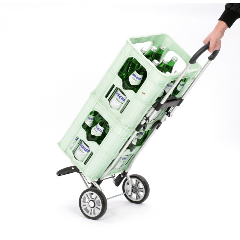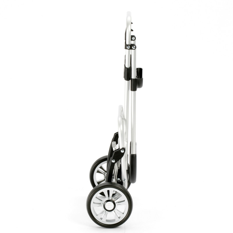 - Алюминиевая тележка Scala Plus отличается своей легкостью, оснащена колесами диаметром 15 см и обладает грузоподъемностью 30 кг. Благодаря простой системе крепления, колеса можно легко снять и помыть. Все, что Вам нужно сделать, это нажать на металлический фиксатор на колесе. Колеса большого диаметра подходят для неровной местности и легкого преодоления ступенек.