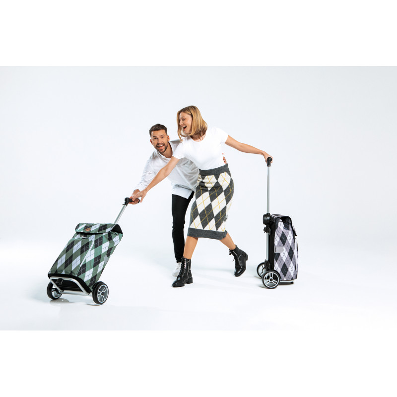 Unus Shopper® впечатляет эргономичностью: трёхсторонняя системная ручка с телескопической регулировкой, для удобного управления, и полностью складная алюминиевая рама. Это надежная и компактная сумка-тележка для походов в магазин и на рынок за продуктами. Данная модель помещается в багажнике любого автомобиля, и ее легко можно брать в супермаркет.
