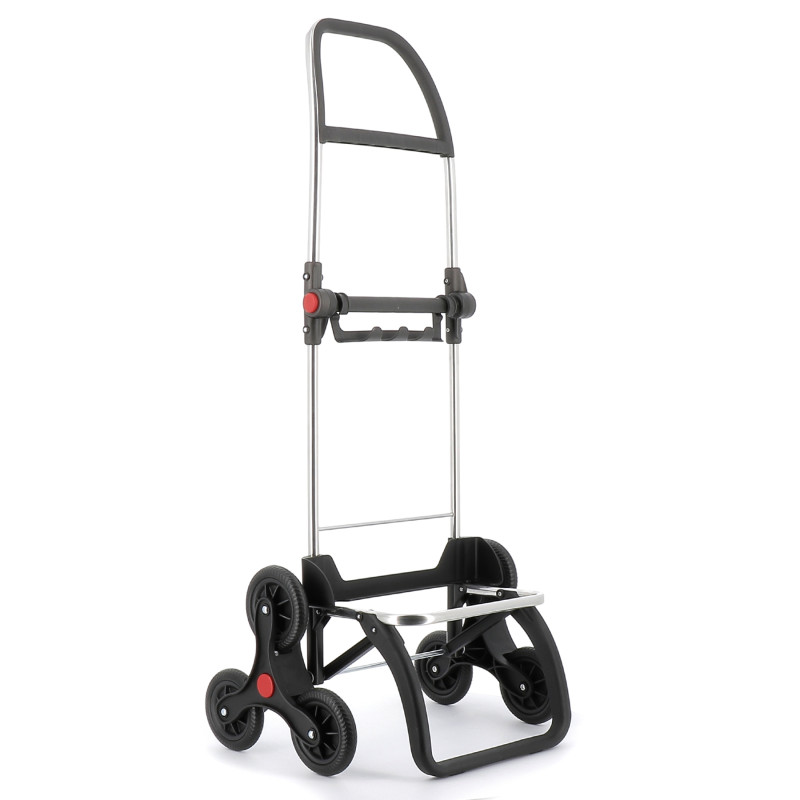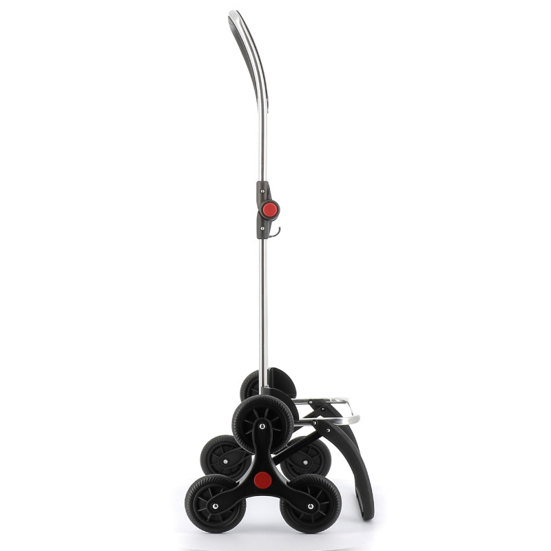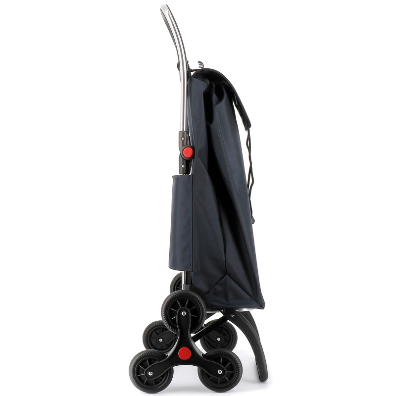 6-колесная алюминиевая тележка, идеально подходящая для подъема по лестнице без усилий. При движении по ровной поверхности в ходу участвуют четыре колеса, при этом вес всей нагрузки равномерно распределяется по шасси и не нагружает вашу спину. Шасси оснащено передней опорой, что позволяет устойчиво свободно парковать сумку в пространстве. При этом его можно сложить одним движением. Нажимая на красные точки, вы просто снимаете колеса с шасси и получаете идеально плоскую форму для удобного хранения. Внутренняя часть рукоятки имеет пластиковую отделку для комфортной транспортировки сумки-тележки в холодное время года. Прочный полиэстеровый, водозащищенный материал сумки призван защитить содержимое от внешних неблагоприятных условий (дождь, снег). Сумка съемная, имеет удобную широкую горловину для удобства загрузки/выгрузки продуктов которая стягивается стяжным шнуром с фиксатором. Верх сумки накрыт защитным клапаном. На дне сумки предусмотрено жесткое вставное пластиковое дно, которое при передвижении опирается на разложенную снизу тележки пластиковую основу. Тележка очень мобильная и устойчивая. Легко раскладывается и складывается.