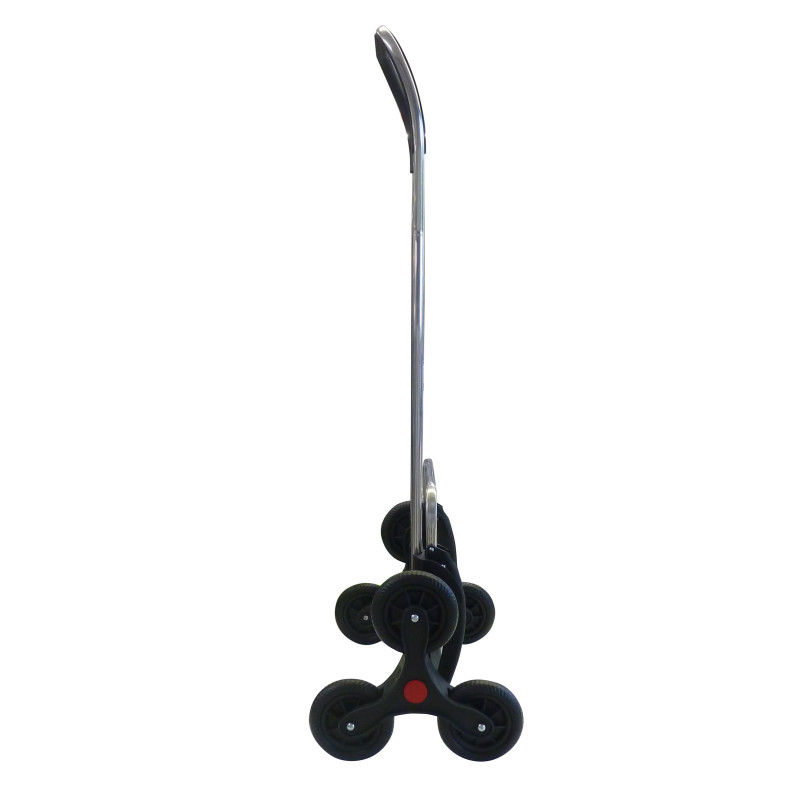 Алюминиевая тележка для покупок на 6 колесах, идеально подходит для легкого подъема по лестнице. Передняя опора. В сложенном виде занимает минимум места. Каркас с вставкой для фиксации и защиты сумки. Вместительная сумка, два внутренних кармана и задний карман на молнии.