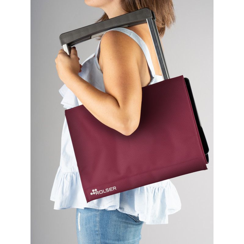 Сумка-візок Rolser Plegamatic Original MF 40 Burdeos (PLE001-1060) складається у форму сумки, має передню опору та легко зберігається. Двома простими рухами дана модель може перетворитися з повноцінного візка для покупок на мініатюрну сумочку. Пара литих ультралегких коліс сприяють відмінній маневреності та плавному коченню по нерівностях. Рукоятка має пластикове покриття для комфортного транспортування сумки-візка в холодну пору року. Міцний поліестеровий матеріал сумки захистить вміст від дощу та снігу. Верх сумки накритий захисним клапаном. Візок дуже мобільний і стійкий, він легко розкладається та складається.