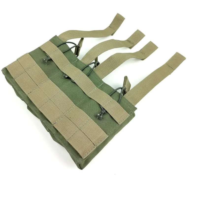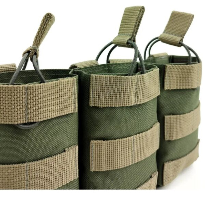 Эластичный шнур надежно фиксирует и удерживает магазины. Система MOLLE позволяет крепить результат с магазинами на поясе, бронежилете и другой экипировке.Прочная ткань с водоотталкивающим покрытием позволяет использовать результат в течение всего года в любую погоду.Каждый отдел можно использовать отдельно для одного магазина.На передней стенке можно дополнительно разместить другие MOLLE-совместимые элементы. Дно итога снабжено люверсами для стока воды.Предназначен для переноски на снаряжении в открытом виде 3-х автоматных магазинов.Размер – 23х12,5х2 см.Ткань – Оксфорд 600D.Цвет – олива.Вес – 140 г.Страна производитель – Украина.