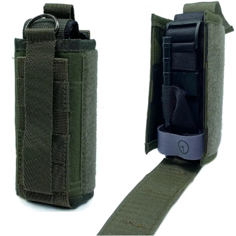 Подсумок предназначен для быстрого доступа к турникету.Особая конструкция итога позволяет быстро и только одной рукой вытащить турникет.Боковые стенки изделия скрепляются спереди липучкой велкро.К снаряжению крепится с помощью системы MOLLE, расположенной на задней стенке или металлического полукольца.Прочная ткань с водоотталкивающим покрытием позволяет использовать результат в течение всего года в любую погоду.Характеристики:Размер – 17,5х9х2,5 см;Ткань – Оксфорд 600D;Цвет – мультикам;Вес – 70 г.