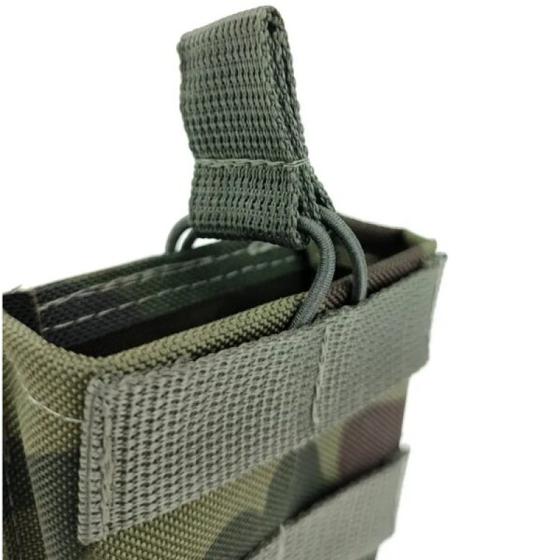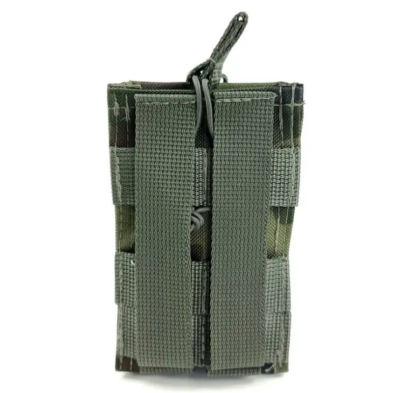 Назначение – используется для быстрого доступа к магазину в любой ситуации.Эластичный шнур надежно фиксирует и удерживает магазин.Прочная ткань с водоотталкивающим покрытием позволяет использовать результат в течение всего года в любую погоду.Система MOLLE позволяет крепить результат с магазином на поясе, бронежилете и другой экипировке.На передней стенке можно дополнительно разместить другие MOLLE-совместимые элементы.Дно итога снабжено люверсом для стока воды.Характеристики:Размер – 13х9,5х3 см;Ткань – Оксфорд 600D;Цвет – мультикам;Вес – 60 г.